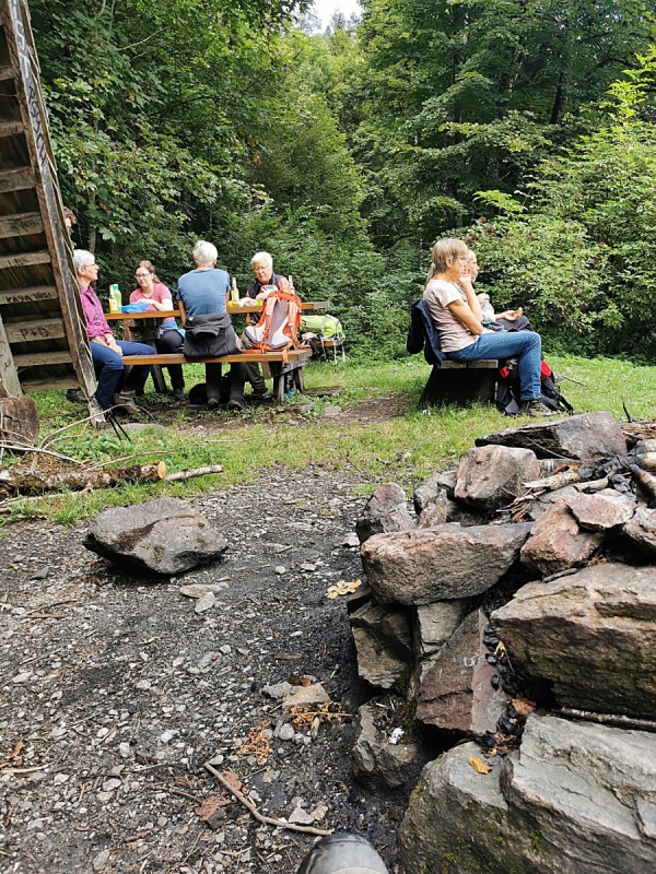 Uber Muggardt zur Homberghütte wo uns ein Vesper mit Berliner Kartoffelsalat von Annette und Nardie mit Schäufele serviert wurde.